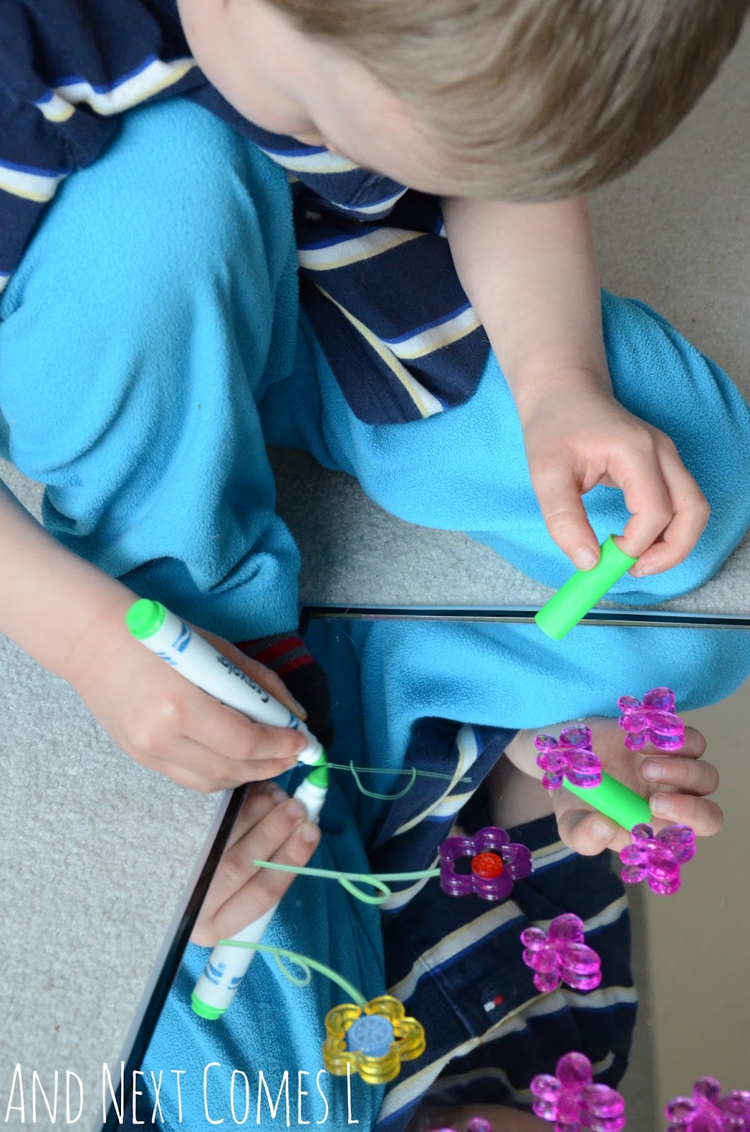 You'll love this spring inspired mirror drawing activity for kids. It's great for toddlers and preschoolers!