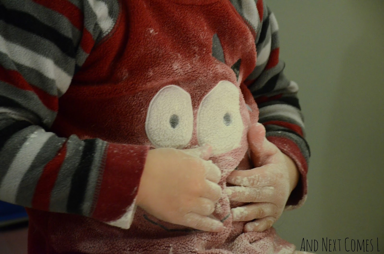 Then the boys stretched out on the light table, fully embracing the messiness of the moon dust. And messy, flour-covered clothes means than an outfit change followed shortly. Meanwhile, I tell myself over and over, "I love messy play. It's worth the mess." Right?