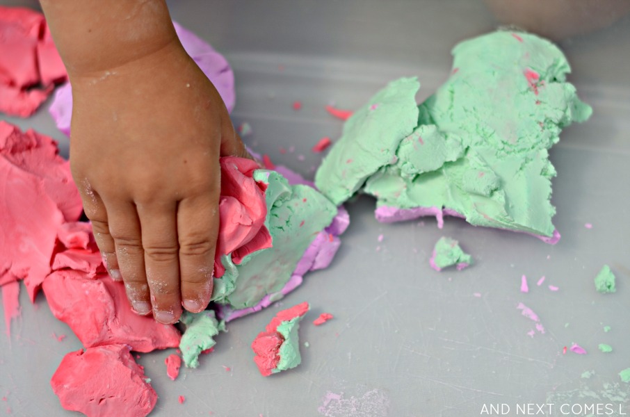 It's just a simple homemade play dough alternative that's a fun sensory experience for kids.